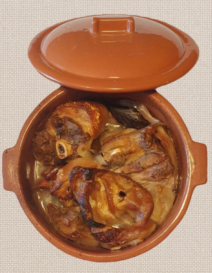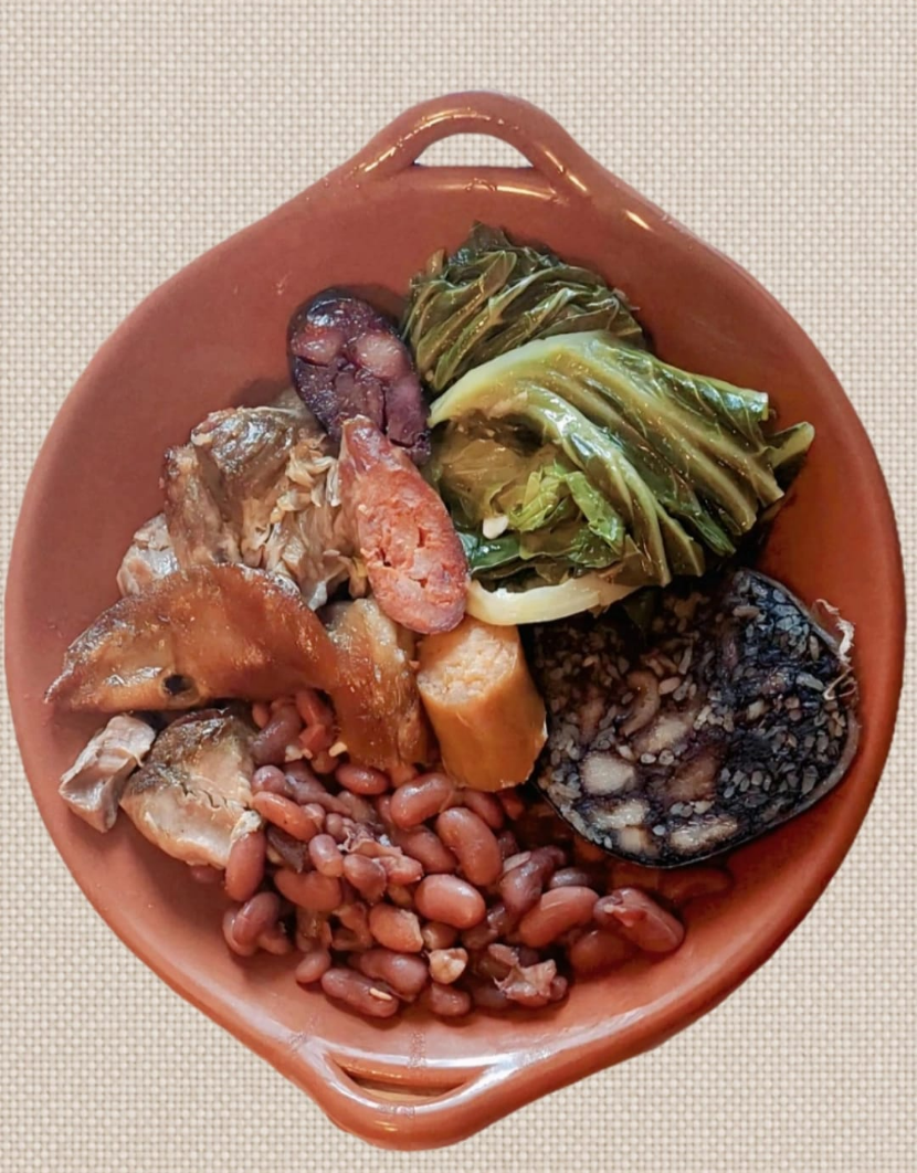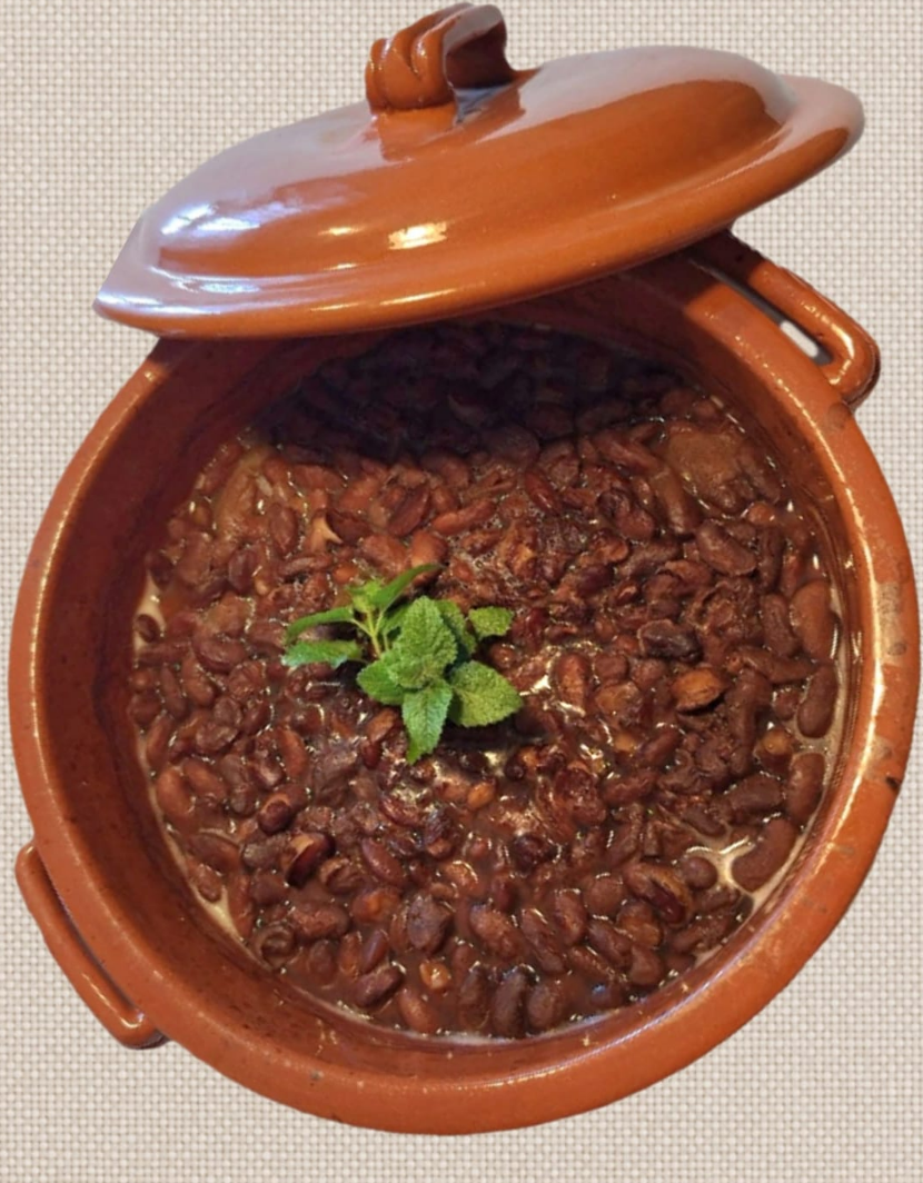 Utilize uma panela de barro adequada ao número de comensais. Coloque o Feijão vermelho sem demolha, junte uma cebola média partida ao meio, três a quatro folhas de louro e uma porção moderada de sal grosso. Cubra com água generosamente e finalize com um fio de azeite. Leve a panela ao centro do forno a lenha já aquecido, com as brasas afastadas para a periferia formando um anel em torno do barro.